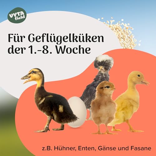 Ideale per la fase di crescita: VYTAfield pulcino starter promuove uno sviluppo sano di ossa, piume e sistema immunitario ed è perfetto per la prima fase della vita dei tuoi pulcini.