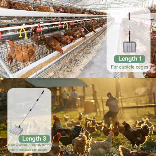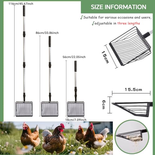 Specifica: Pala da escrementi di pollo, allungabile, in lega di alluminio, regolabile, per pollaio, per pollo, per la pulizia di escrementi di gatto e pollo